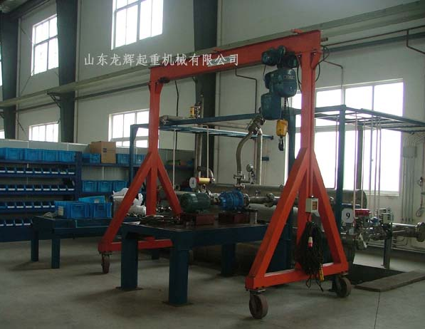 產品說明 Product Description簡易手推龍門架起重機:簡稱-小型龍門架,輕型龍門架,簡易龍門吊,簡易龍門架,簡易門式起重機,移動式簡易龍門吊,手推門式起重機,固定門式起重機,門式起重機 第一部分技術參數說明 ELK型 環鏈電動葫蘆 PK型 環鏈電動葫蘆 手拉葫蘆+手拉跑車 第一部分簡易龍門架起重機技術參數說明 1、技術標準:通過并符合以下標準。 GB/T3811-2008 起重機設計規范 JB/T9008.1-99 鋼絲繩電動葫蘆型式和基本參數標準 JB/T9008.2-99 鋼絲繩電動葫蘆技術條件 JB/T5663-2008 電動葫蘆門式起重機制造標準 JB/T 5317.1-1991 環鏈電動葫蘆型式和基本參數標準 2、表面部分:龍門架表面采用噴砂除銹,油漆:樂華品牌,樂化環氧聚酯胺底漆+環氧聚酯胺面漆。顏色可根據國標色卡定制。 3、萬向輪:國內最好品牌,質量超越同級國際品牌,輪直徑200mm,材質尼龍輪,非市面上普通的聚酯胺輪子,尼龍輪的硬度和耐磨程度與鋼材材質相同,單輪承重3500kg,阻尼系數3/1000,也就是說只要15KG的力就可以將5T的重物移動。 4、鋼板采用山鋼集團產品,并附材質單。主梁材質Q2345,工字鋼采用萊鋼集團特鋼廠出品,上海磁懸浮列車軌道就是出自這里。工字鋼運行平穩無接縫,耐磨,表面硬度達到HB300。 5、立柱采用聊城嘉龍管業無縫鋼管,垂直度穩定性國內最好。 6、異形鋼采用萊鋼特軋鋼廠定制產品。 7、電器部分:進口合資品牌:德國西門子/法國施耐德/臺灣士林電器,接地保護,短路保護,失壓保護,過流過載保護,電源錯相保護。 8、專利電纜:定制專利產品,100%足平方,YC橡套帶鋼絲扁平電纜。電纜雙側帶防拖拽鋼絲繩,保證運行時絕不拖拽不斷線,保證設備正常運行。 質量保證 1、環氧聚酯胺油漆耐曬耐油耐腐蝕,質保三年,不褪色,不變色。 2、萬向輪二年包退包換。 3、主梁質保5年,無超載情況下,完全符合國家標準。 4、故障保修:接到保修電話2小時內響應。 7、焊接成型:主要部件采用數控+半自動切割準確下料,大量采用生產制造胎具,焊接平臺,保證成型準確穩定的加工工藝,整體焊接全部采用CO2氣體保護焊,半自動埋弧焊,焊接強度大。 8、檢驗機構:設備經過第三方焊接探傷檢測機構,100%通過超聲波探傷與X射線探傷合格,才準予出廠。 9、山東省特種設備檢驗機構駐廠檢驗,從設計;材料;制造;應配件等全程檢驗。并取得設備監檢報告合格后,方可出廠。 技術參數表
