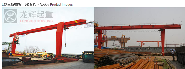 L型-電動葫蘆門式起重機-L型單主梁吊鉤門式起重機由橋架,大車運行機構,小車,電氣設備等組成。適用于露天倉庫或鐵路沿線進行一般的裝卸和起重搬運工作。其工作環境溫度-20℃-+40℃。