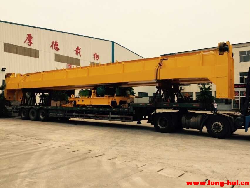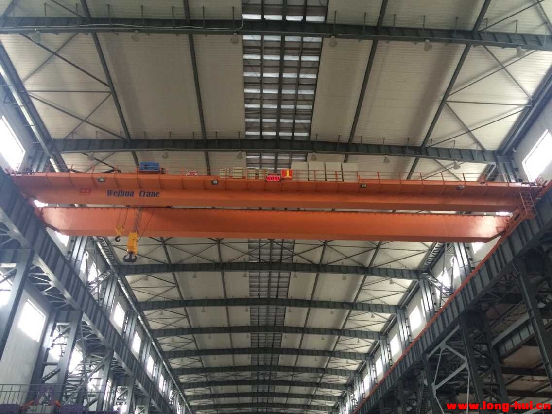 QD橋式起重機,天車,行車,適用于廠礦、企業的車間、倉庫等,在室內或露天的固定跨間作一般裝卸及起重運輸工作。 本機按使用繁忙程度分為中級與重級兩種工作制度;中級適用于機械加工,金屬結構,裝配等車間;重級適用于冶煉車間和參加連續生產的搬運工作。 本機由箱形橋架,大車運行機構、小車、電氣設備四部分構成。全部機構均在操作室內操縱。 露天使用時,帶有防雨設備。 QD型5-50噸吊橋式起重機,天車,行車,是采用國際先進標準制造的系列產品。整機結構新穎、造型美觀、工藝性好、操作靈活平穩、安全可靠。 特點: 1、橋架采用箱型主梁,自動埋弧焊焊接。 2、小車導電采用工字鋼軌道電纜導電新裝置,安全可靠。 3、起升機構根據要求還可設第二套安全裝置。增加可靠性。 4、零部件標準化、系列化、通用化。 5、操縱室視野開闊,全部機構均在操縱室內操縱,工作舒適操縱靈活。 本產品廣泛用于普通重物的裝卸與搬運,還可配以多種專用吊具進行特殊作業,當露天使用時帶有防雨設備。選用時應注明工作制度,工作環境的最高、最低氣溫及電源和類等技術要求,還可根據用戶要求的跨度設計制造。當露天使用時帶有防雨設備。選用時應注明工作制度,工作環境的最高、最低氣溫及電源和類等技術要求,還可根據用戶要求的跨度設計制造。 技術規格表 Technical Specifications名稱 Title | 單位 Unit | 最大規格 Specs | 額定起重量 Load: | Gn | 5T,10T,16T,20T,32T,50T,80T,100T,125T,160T,200T,250T,320T,500T | 跨度 Span: | S | 7.5m-30m. | 提升高度 Lifting Height: | H | 6m-30m. | 工作電源 Power source | | 3p A.C 50HZ 380V | 工作級別 Class: | jc | A5,A6,A7,A8 |