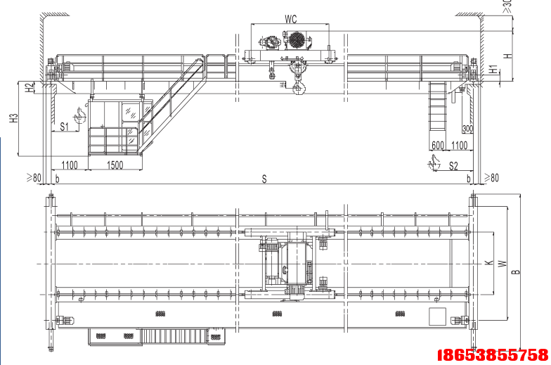 注(zhu):Gn=起重額(e)定噸位 S=跨度(左軌道中心至右軌道中心的距離) H=提升(sheng)高(gao)(gao)度(地面(mian)至吊鉤最高(gao)(gao)點(dian)的距離) |